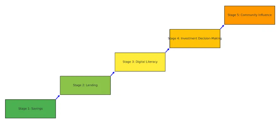 This shift moves the group beyond short-term savings. Members begin building equity and generating income together. Financial dashboards allow all members to stay informed, contribute to decisions, and monitor outcomes.[10]