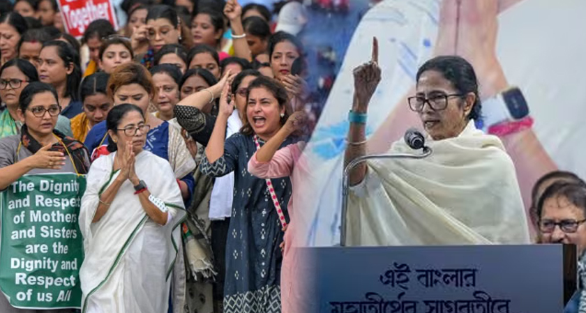 Mamata Banerjee, the chief minister of West Bengal, marches from Jadavpur to Hazra More, accusing the ED of politically motivated I-PAC raids in advance of elections.