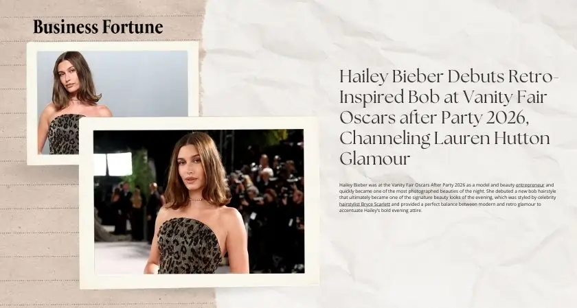 Hailey Bieber was at the Vanity Fair Oscars After Party 2026 as a model and beauty entrepreneur and quickly became one of the most photographed beauties of the night. She debuted a new bob hairstyle that ultimately became one of the signature beauty looks of the evening, which was styled by celebrity hairstylist Bryce Scarlett and provided a perfect balance between modern and retro glamour to accentuate Hailey’s bold evening attire.